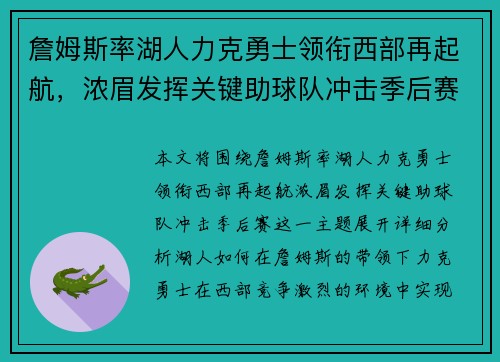 本文将围绕“詹姆斯率湖人力克勇士领衔西部...