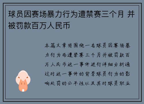 本篇文章将围绕一名球员因赛场暴力行为而遭...