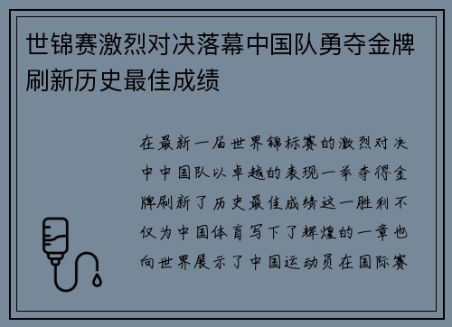 在最新一届世界锦标赛的激烈对决中,中国队...