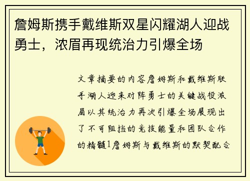 文章摘要的内容:詹姆斯和戴维斯联手,湖人...