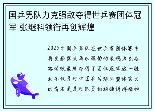 2025年,国乒男队在世乒赛团体赛中再度...