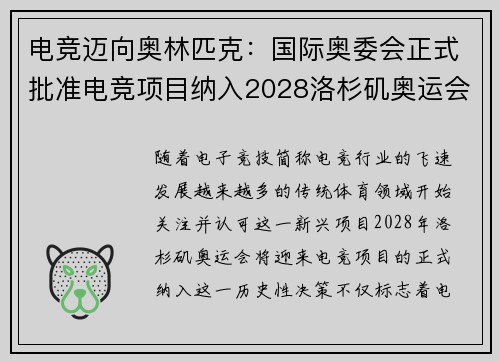 随着电子竞技(简称电竞)行业的飞速发展,...