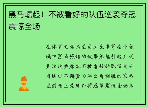 在体育、电竞、乃至商业竞争等各个领域中,...