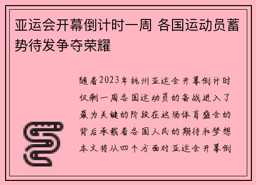 随着2023年杭州亚运会开幕倒计时仅剩一...